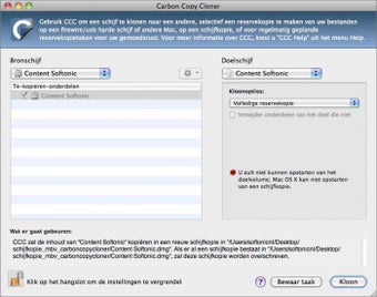 De technische termen en handelingen lijken misschien een beetje eng, maar Carbon Copy Cloner bevat een uitgebreide Nederlandstalige gebruiksaanwijzing. Daarnaast is het overzichtelijke menu gelukkig beperkt tot de essentiële functies en opties. Het klonen zélf duurt wel aardig lang. Het is beter om tijdens het kopiëren je systeem niet te zwaar te belasten. Denk daarom vooruit en plan je taken voor Carbon Copy Cloner op passende tijdstippen.